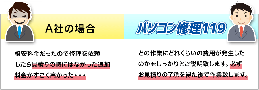 修理前にしっかりと診断させて頂き、修理内容とお見積りにご了承を得た後に作業を行います!
