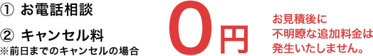 • 前日の夜21時までのキャンセルは無料です。当日現地キャンセルはキャンセル料金(基本料金と出張料金(出張サポートのみ)の同額)が発生いたします。